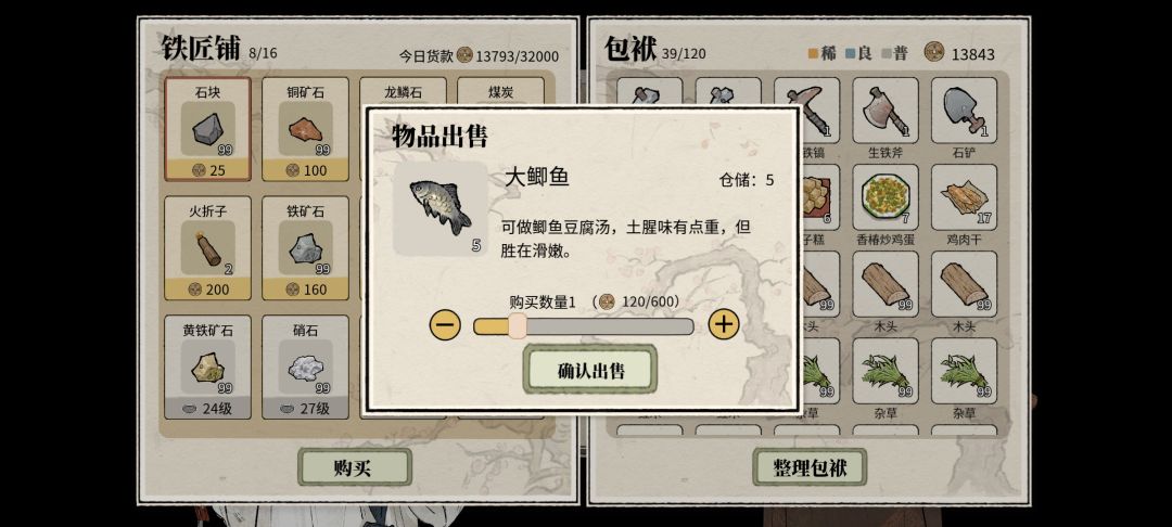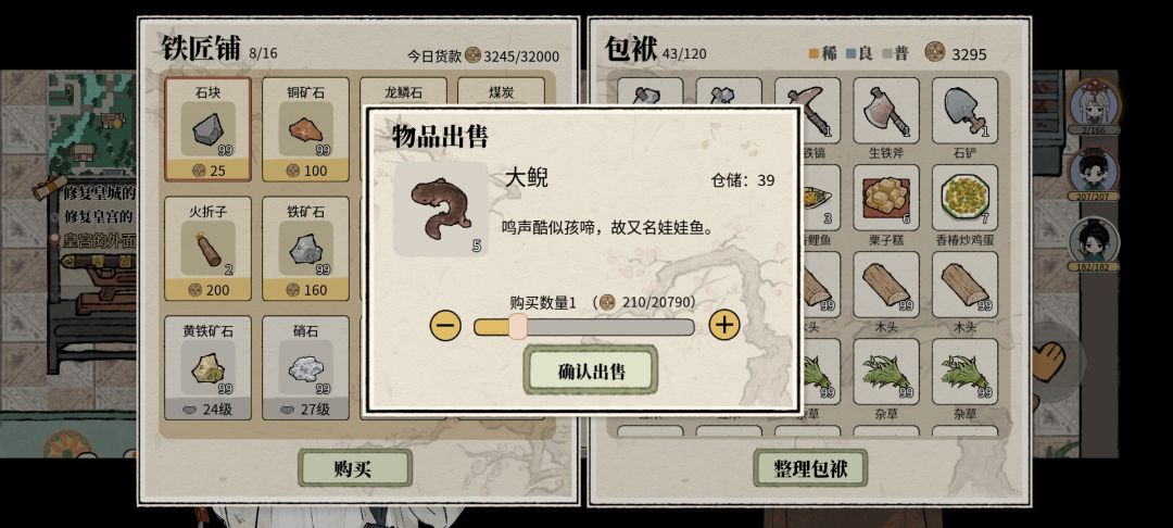 是这样的,昨天挖矿到26层之后稿子等级不够去不了下一层,但是看着自己一百多体力觉得有点可惜,于是掏出来鱼竿开始钓鱼,矿洞主产黑鱼和大鲵,掉了几个次之后没带鱼饵,最后兴致缺缺的出了矿洞,白天的时候拿着一些鱼去换铜,发现矿洞的鱼性价比超级高(放几张价格对比图)。哇,于是准备了50个鱼饵去26层钓鱼,很不错,因为钓鱼会有经验,人物升级之后体力又回满了,最后鱼饵用光了才出来的,最后换铜之后铜币也达到了1.5W。明天打算看看,试试能不能下笼子。晚安啦大家