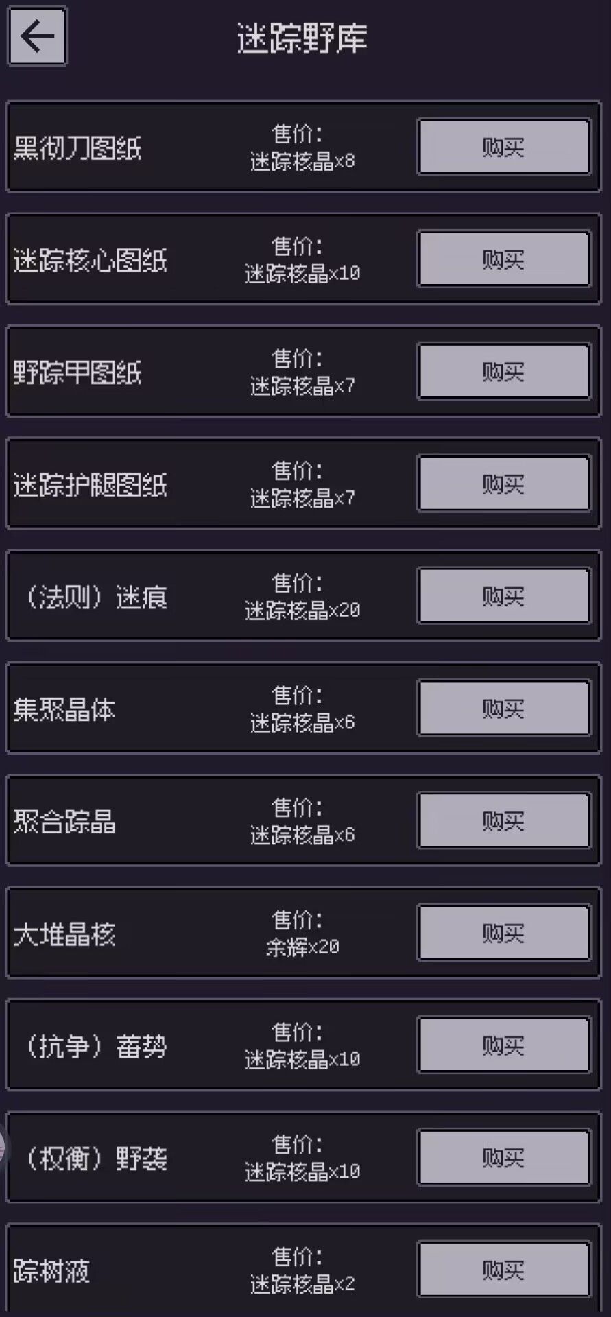 迷踪蛮人商店,集聚晶体和聚合踪晶的效果分别为能力栏+1(限弟一次)与开启迷踪套精炼第二技能