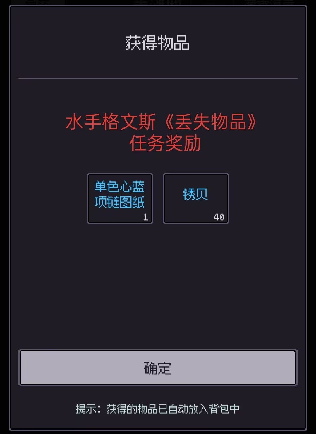 《丢失物品》任务奖励
