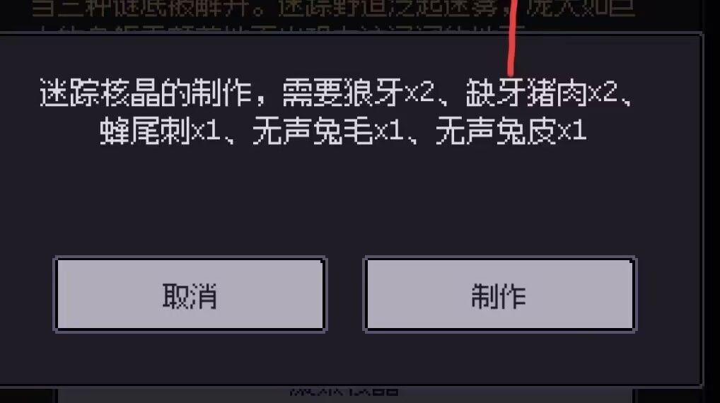 接下来打到现在用攒的材料搓新手装备套装 (铁剑、圆盾 等初始装备),在制作间升品到红色品质后现在的属性可以单挑基本怪物(缺牙猪,无声兔,残狼,毒针蜂 ),开始做 琐 事 等任务刷材料升等级攒属性,升个几级后去《迷踪野道》点《镂空粗墩》,用前面 《杂货铺》 买的 《粘土》 选 《纹路》 选项获得《纹路解读》 ,用NPC:伊莉雅修女 的 安居所 任务给的《寇蕊图纸》和《小径中段》小地图的野怪《毒针蜂》掉落的《毒蜂巢》,用在《迷踪野道》采集《菁纯花》(概率掉《菁凝》),凑齐上述材料后在《镂空粗墩》选《放置》后即可召唤NPC:迷踪蛮人,到这一步给物攻战士《守卫》职业,同样在克苏鲁 中可响应 使用,打野怪《蛮兽综》掉《迷踪核晶》(也可以通过消耗前面获得的野怪材料找《迷踪蛮人》搓核晶,具体材料看下图)找 迷踪野人 换迷踪套图纸和各种核晶还有遗物:迷踪盾,把迷踪套搓出来基本就能打过《蛮兽综》了,到这里基本装备与钓竿都成形了。