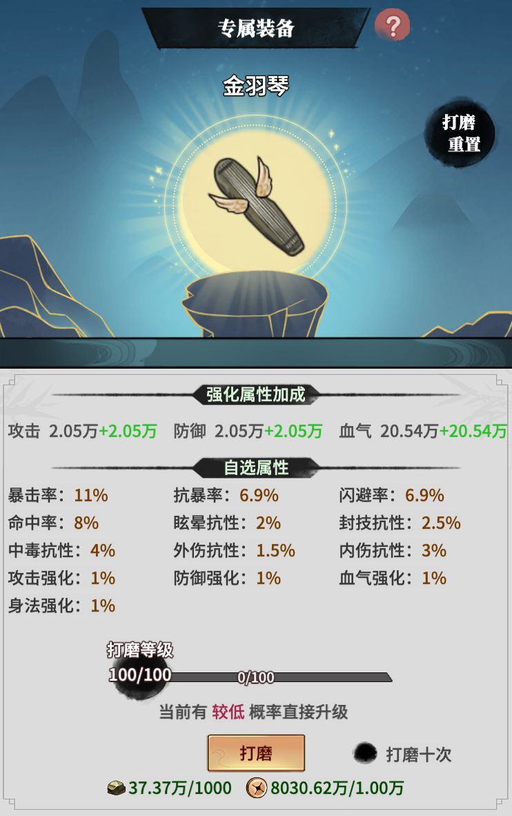新增专属装备打磨,强化属性百分比加成,自选高级属性统统都有!...