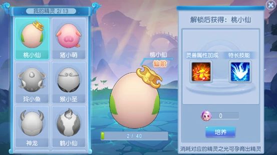 【桃小仙】仙阶精灵,技能法临:宠物死亡时,有50%几率自动召唤出宠物栏法攻最高的宠物,一场战斗最多两次,不占用召唤宠物次数,不能和猛袭、桃愿、桃梦一起叠加使用。