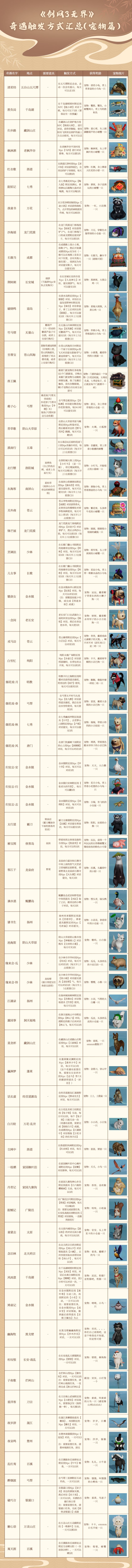 《剑网3无界》奇遇触发方式汇总(宠物篇)