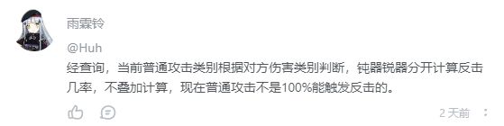 当时有一个客服跳出来说,普通攻击也分钝器和锐器