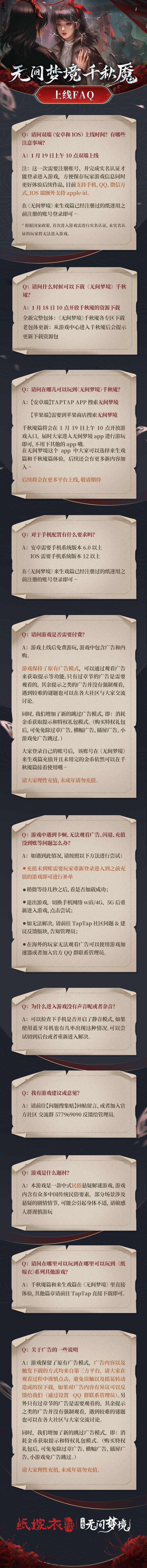 ,为了让大家能够更顺利的进入游戏,阿纸为大家来了千秋魇篇FAQ,这一次的FAQ和以前的有一些区别,大家记得仔细观看哦~