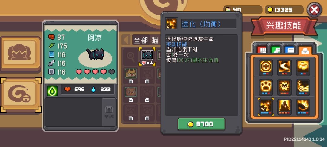 这方面需要讲的不多,无非就是搭配个技能,点出进化(均衡)就好了,宠物退场后快速回血,超强续航,根本停不下来,饰品羁绊方面就可以选择保命类,比如黄盾之类的,自己搭配就行,宠物可选熊猫与老虎,天赋都是减敌人伤害
