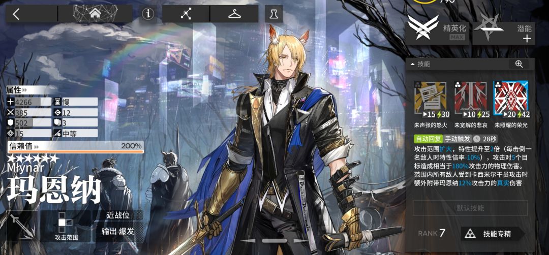 而情报官分支的晓哥因为一技能属于被动类型,反而可以顺利恢复部署费用;星熊的二技能是被动类,不需要技力也可以生效,你可能会选择泥岩,因为她的二技能是受击恢复,但是她庞大的费用可能会导致你部署不下去,凯尔希和令也是同理;缄默德克萨斯的技能属于被动、而德克萨斯则是自然恢复会被影响;蓝毒的一技能是攻击恢复而灰喉的一技能是自然恢复,在这个地图中攻击恢复的技能会更加吃香;