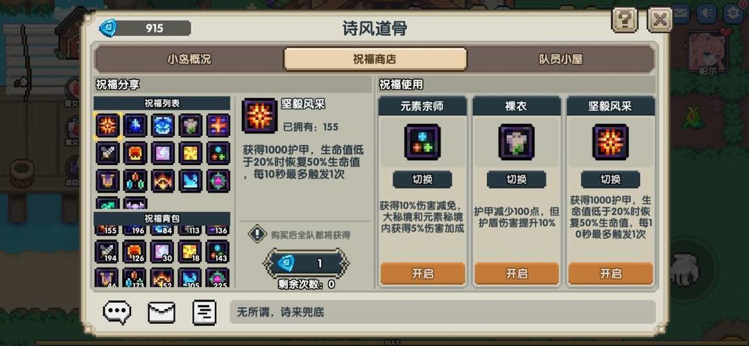 因为地上的火还挺烫脚的,是有暴毙风险的,所以可以考虑带一个坚毅风采。
