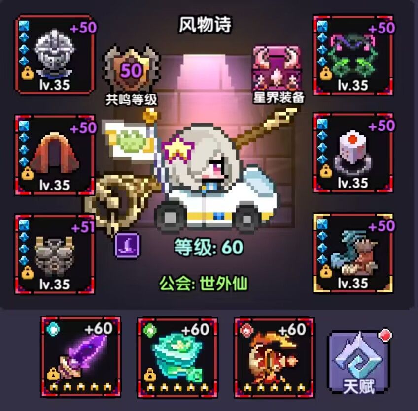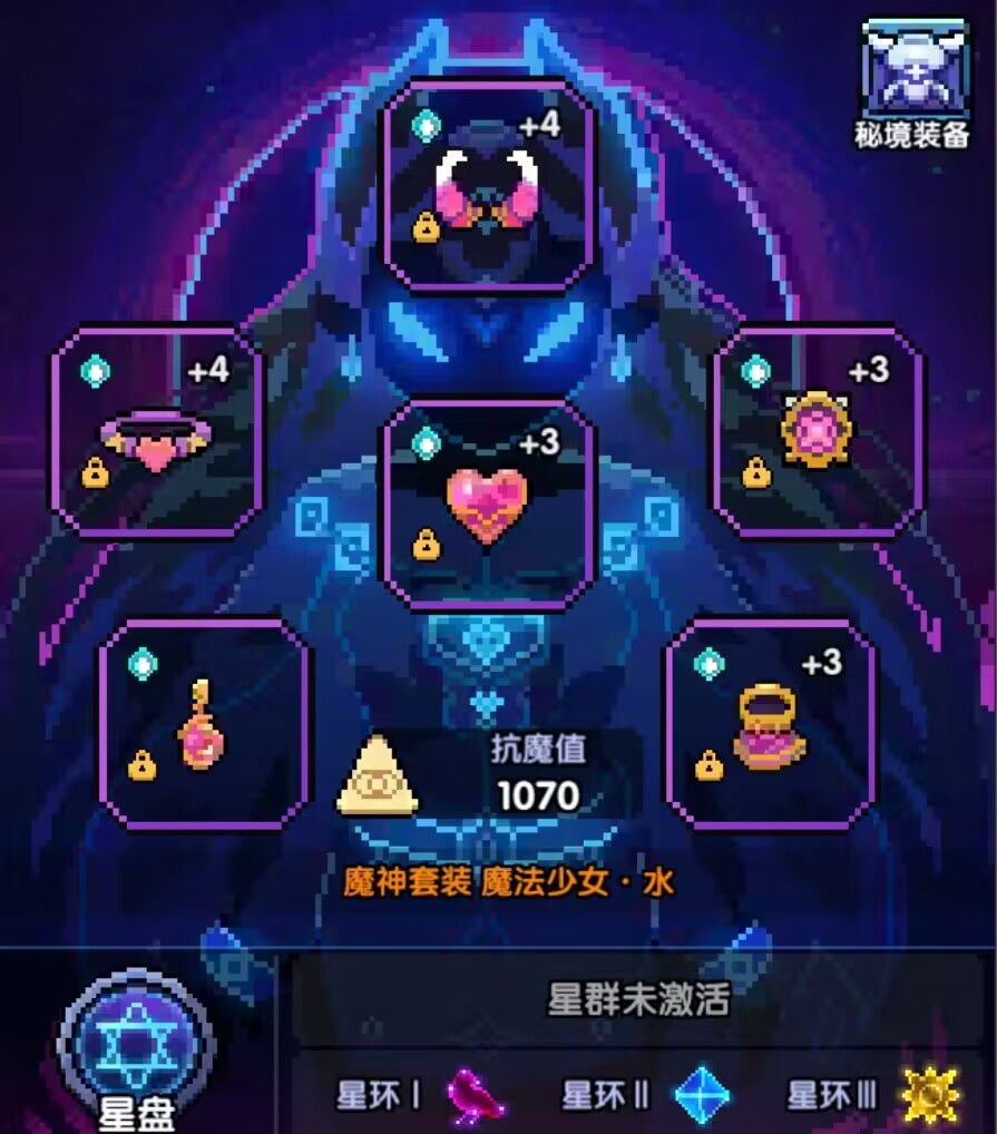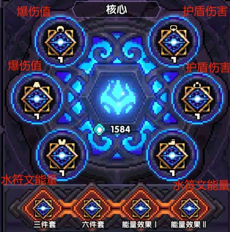 如果极度缺乏元穿,魔角和核心可换成一阶的外装,主属性元穿