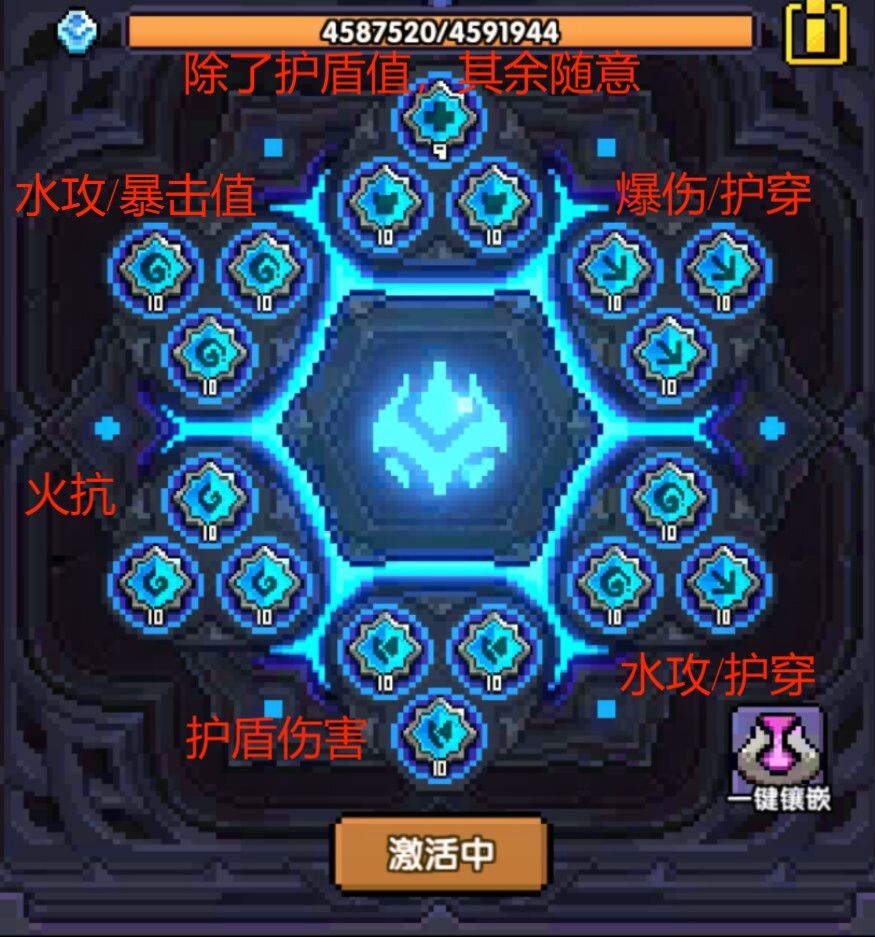 副属性:首领+护穿+水攻/暴击值