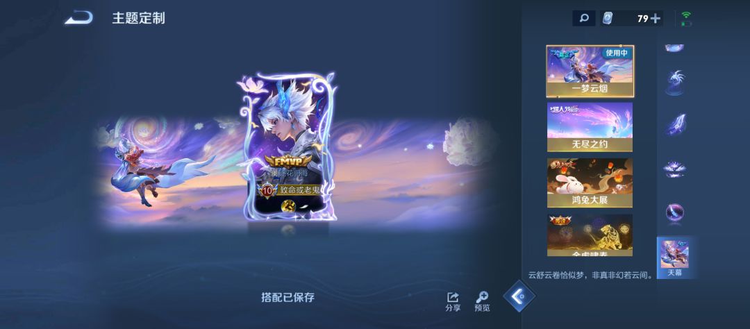 王者荣耀贵十出新皮肤了,还挺好看,并且我还买了一梦云烟天幕等,和骨刃生花礼包,总体来说还是比较满意的,祝王者荣耀越来越好