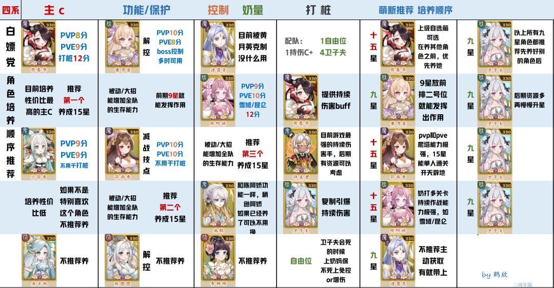 ②前期不用管配队,先集中资源养出一个十五星主c再考虑其他角色。