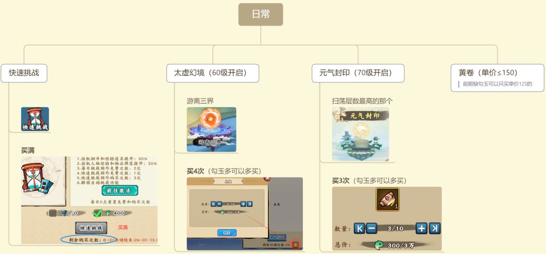 1.快速挑战每天拉满用于前期升级,解锁高等级功能