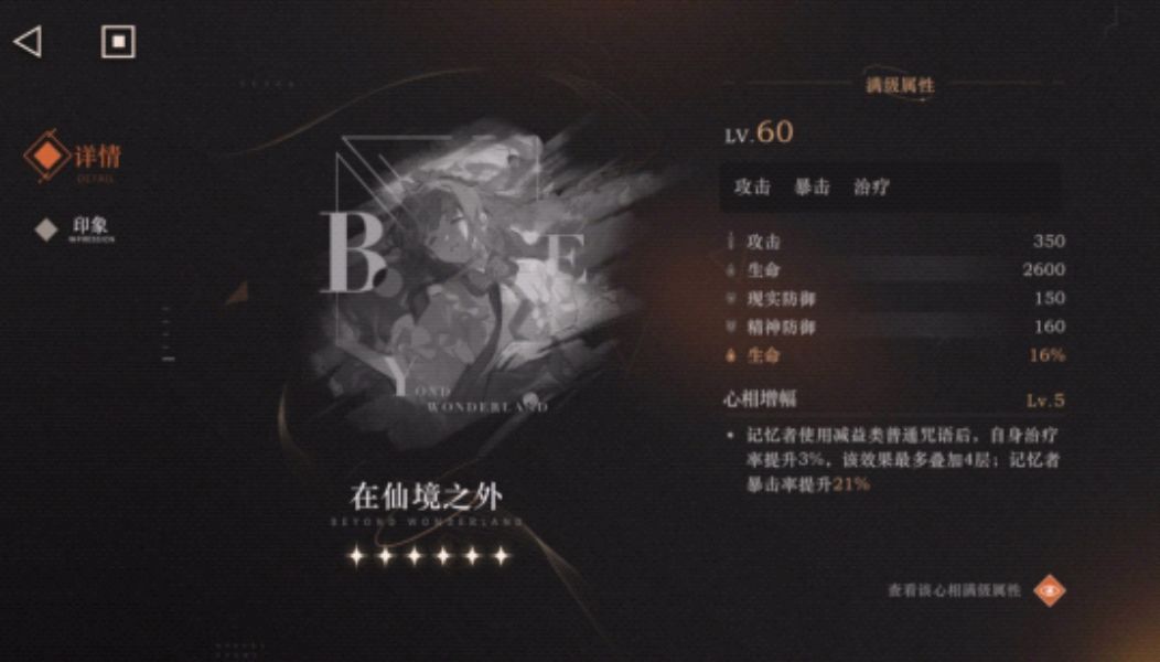 在仙境之外,第五次条生命根据生命进行回血以及护盾的小叶尼赛提升生命能够最大程度的提升他的能力,心相特效使用debuff后获得治疗率提升3%可叠加四层,最后提升暴击率增幅提升的也是暴击率,对暴击技巧排名全由第12的小叶尼赛暴击奶也是个不错的就业选择, 可说该心相磁条完美贴合。