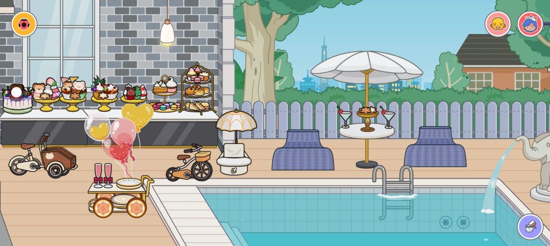 谋楼上大概就是一个衣帽间,一个化妆间比较大,一个儿童房,还有阳台烧烤,还有一个儿童房。游泳池那里主要是一个派对主题,当时为了迎合圣诞气氛,稍微布置了一个圣诞节场景
