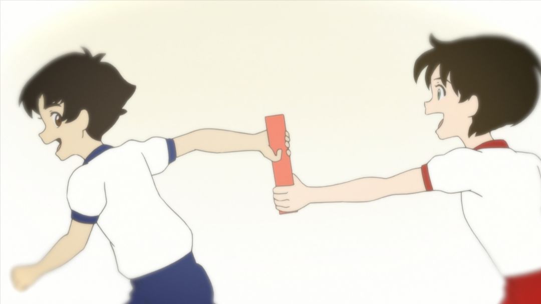 -明、美树从小是学校4×100接力比赛的田径队成员。在明心中,红色的接力棒有“希望”与”爱”的意味,而黑色的接力棒则意味着“绝望”与“死亡”-