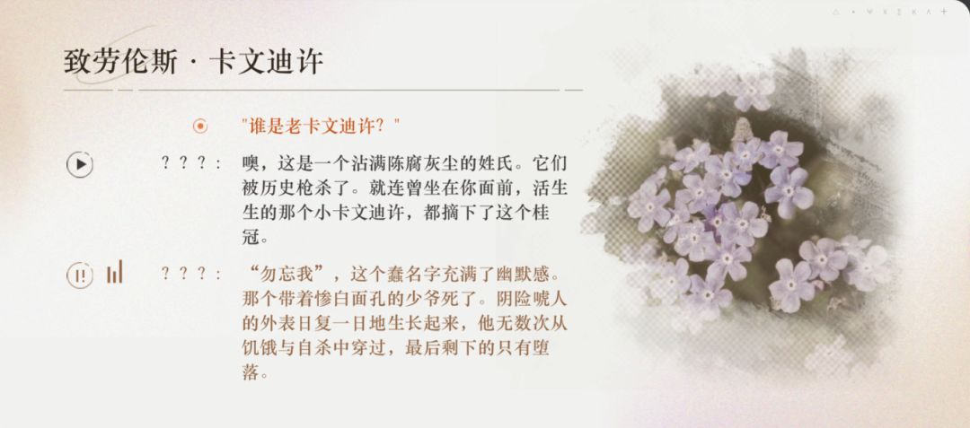 4)小卡文迪许对家族最后的记忆也许就是姐姐将他从一片熊熊燃烧的勿忘我花田中推出,在烈焰的灼烧中哀嚎着死去(这导致了勿忘我对人类的憎恨,以及对槲寄生奇特的敬仰)