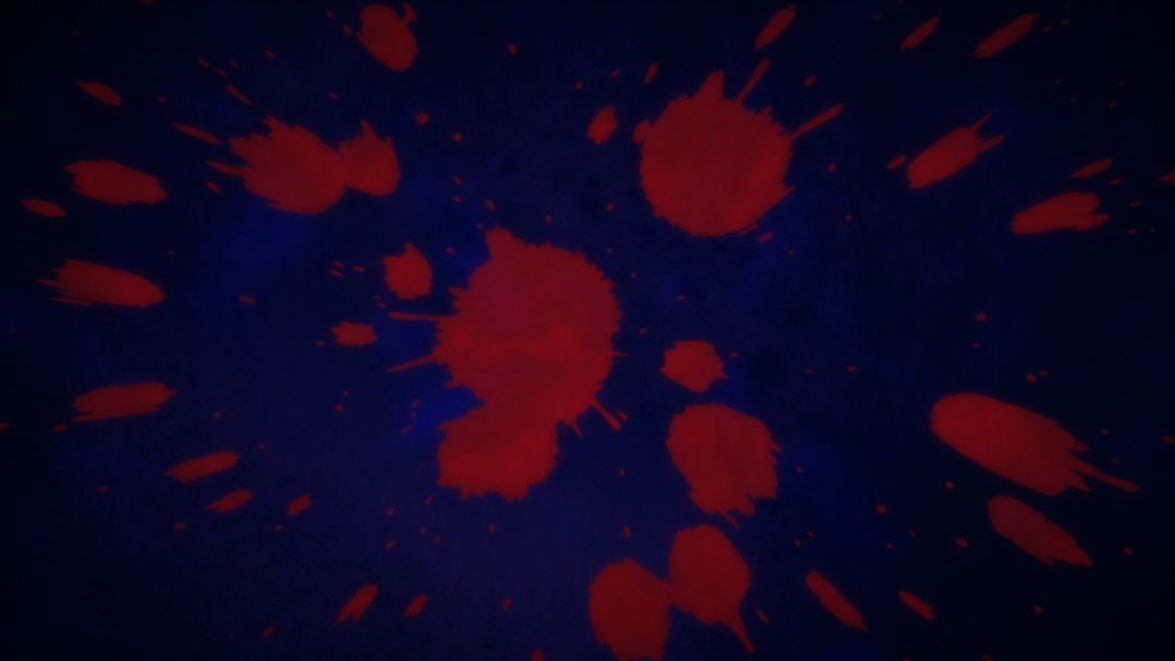 1、通过“黑色背景”与“放射状血滴”的画面配置,还原“眼前一黑”与“疼痛”的内部感受