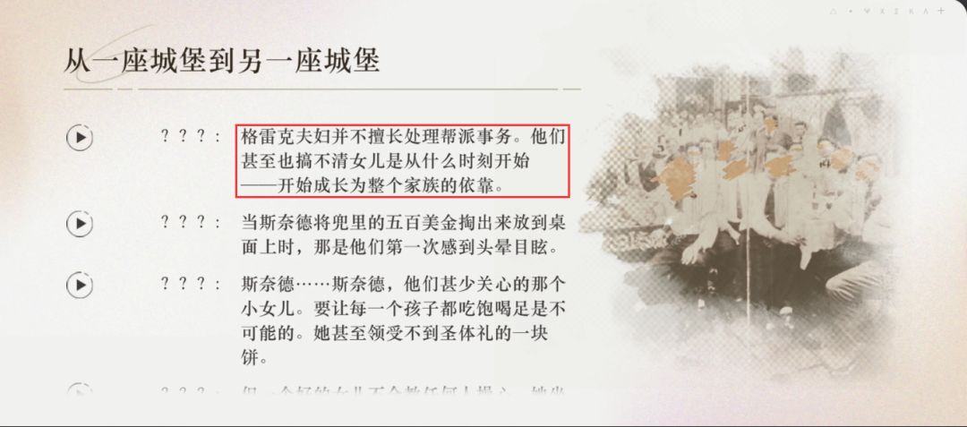其一、以维尔汀(读者)的视角进入斯奈德的记忆(通过“幻术”这一介质),使读者间接参与到角色过去的书写。回忆杀不再局限于对角色背景信息的补充,而是“读者与角色共有的一段过往”
