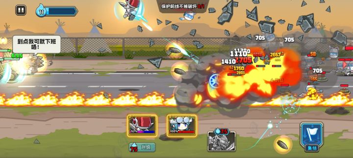 开局先出飞侠,最好用反伤2%前线护栏,让敌方长矛兵打的时候掉血,之后出火炮兵,飞侠优先出攻速,没就用它25%的升级天赋,当火炮兵来到三个的时候,果断出机械师(升级弹力炮管,无就用战技积累过渡),这个时候如果运气好,第一个50升级点可以直接让机械师升级(炮弹扩散)配合炸弹人,直升飞机(现在是2个了),直接就是平推了,炸弹人是必须出的,没有它敌方地雷把机械师炸飞结局翻车的,发生了很多次了!最后预祝大家通关成功!