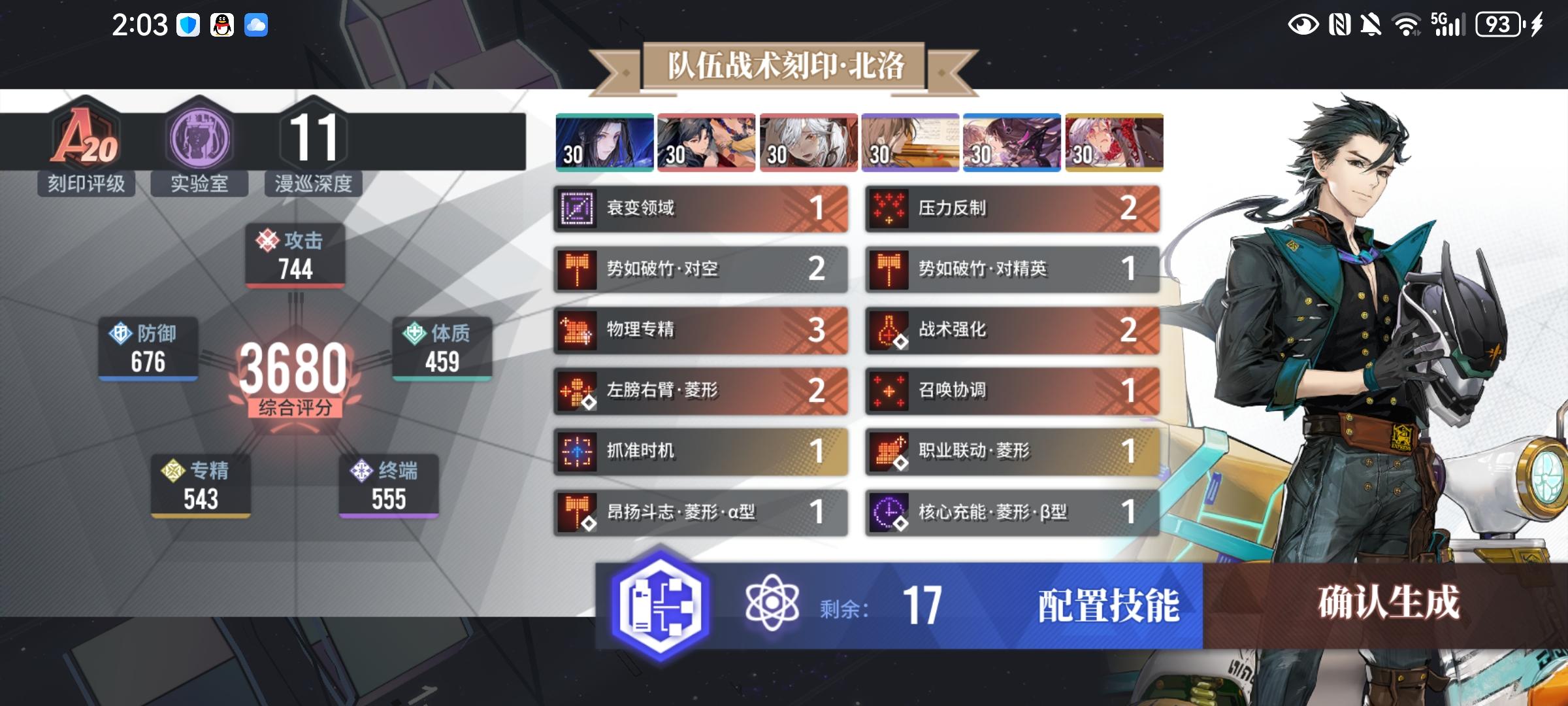 主线通关送的一二两章+送的sr千草+随意自己抽到的两张烙痕即可(注意看烙痕◇技能多不多),最后一张是找氪金大佬嫖的(刷新多刷几次,总会出的,出了后以后烙痕就用上次组合,这样可以一直嫖。)