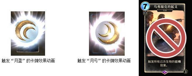 “月盈&月亏”进场触发的机制比较类似于“召唤”,对应效果的触发附加了醒目的动画,但值得注意的是,“月盈&月亏”并不属于“召唤”,即不会被乌弗瑞克起义触发效果。