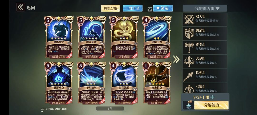 之所以放这个图,就是为了给大家明白,职业选择对的人重要性。卡片多为低星,但是伤害是其他人的10倍(这里有人可能会说,炮台弓本来就是以炮著称,伤害可观是必然的,这句话没错,但是如果是一个职业五星卡很多伤害还不如他的呢)。