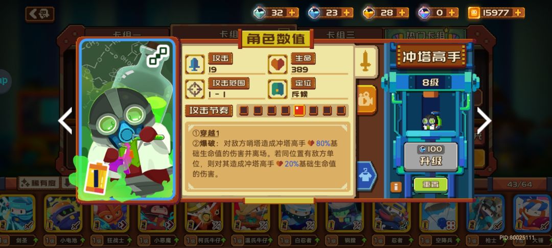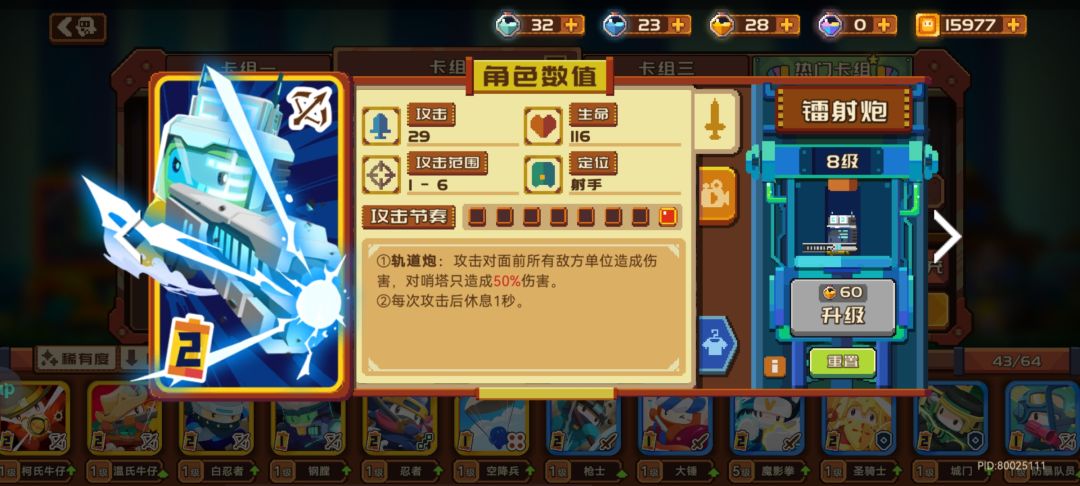 卡组中最核心的射手 可以打对方全员 直接刮痧塔 后排杀手 需要等压对方镭射会起到很好的效果
