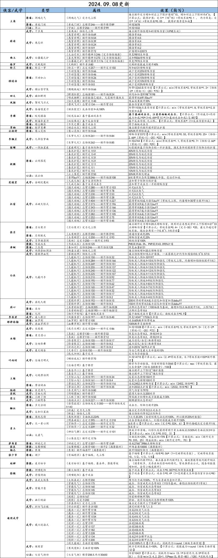 为更加方便科学的配置各侠客、武学等,在这里提供大部分属性数值查询表,内容较多,可收藏保存下来,帖子不定期随版本更新而更新。