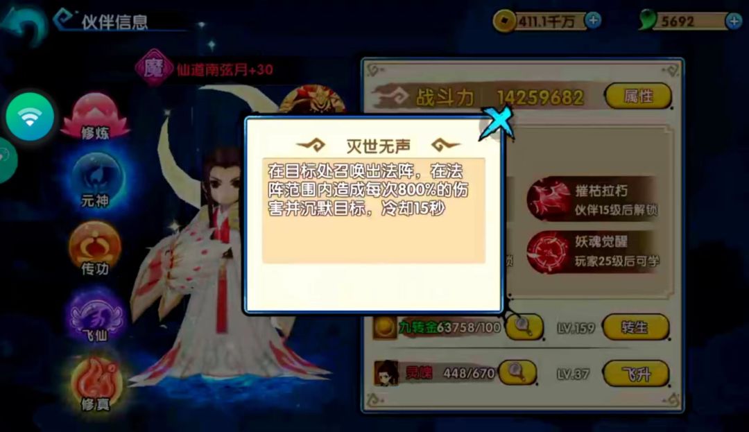 觉醒.南弦月灭世无声技能:在超大范围内落下爆裂的真气,对敌人造成大量伤害并沉默敌人。