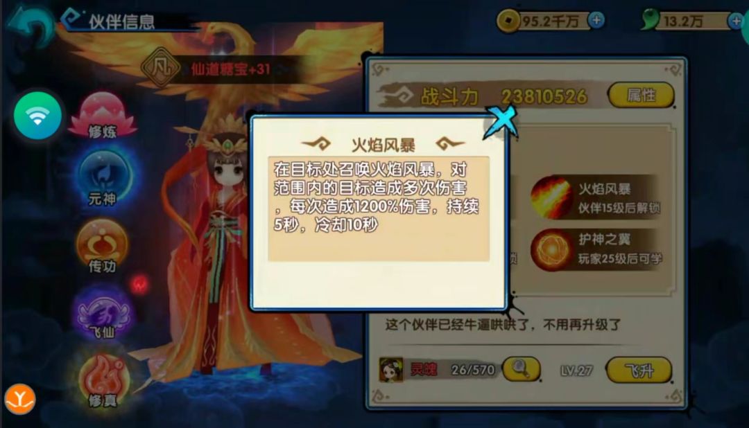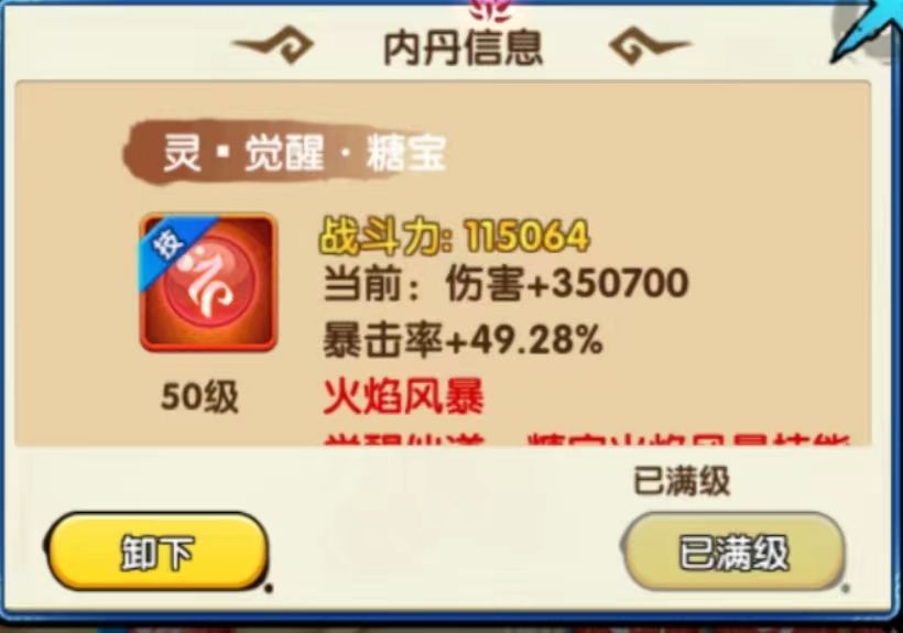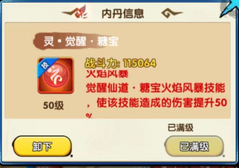 觉醒.仙道糖宝火焰风暴技能:使该技能造成的伤害提升50%。