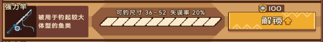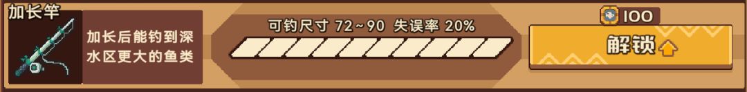 鱼竿主要限制可钓到的鱼/生物的尺寸,但在一开始鱼图鉴还未显示时,鱼的尺寸范围是未知的,仅可通过图鉴中的占格大小来区分。