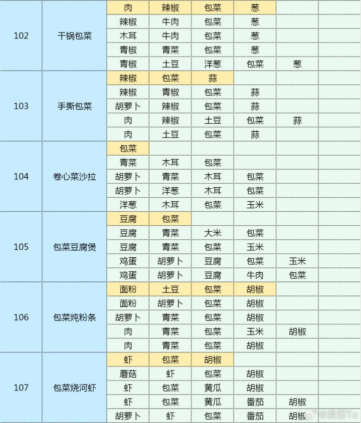 菜谱更新一下
