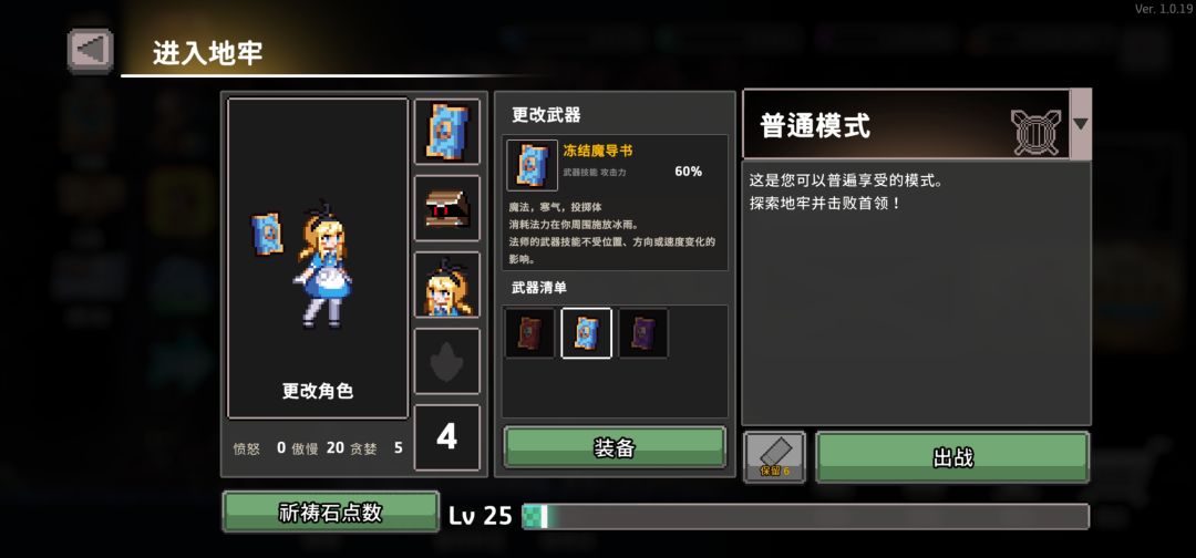 就三样武器 火 法 电 那么我们想玩什么套路就选择相对应的武器就好 这次演示我们选择冰冻魔法书