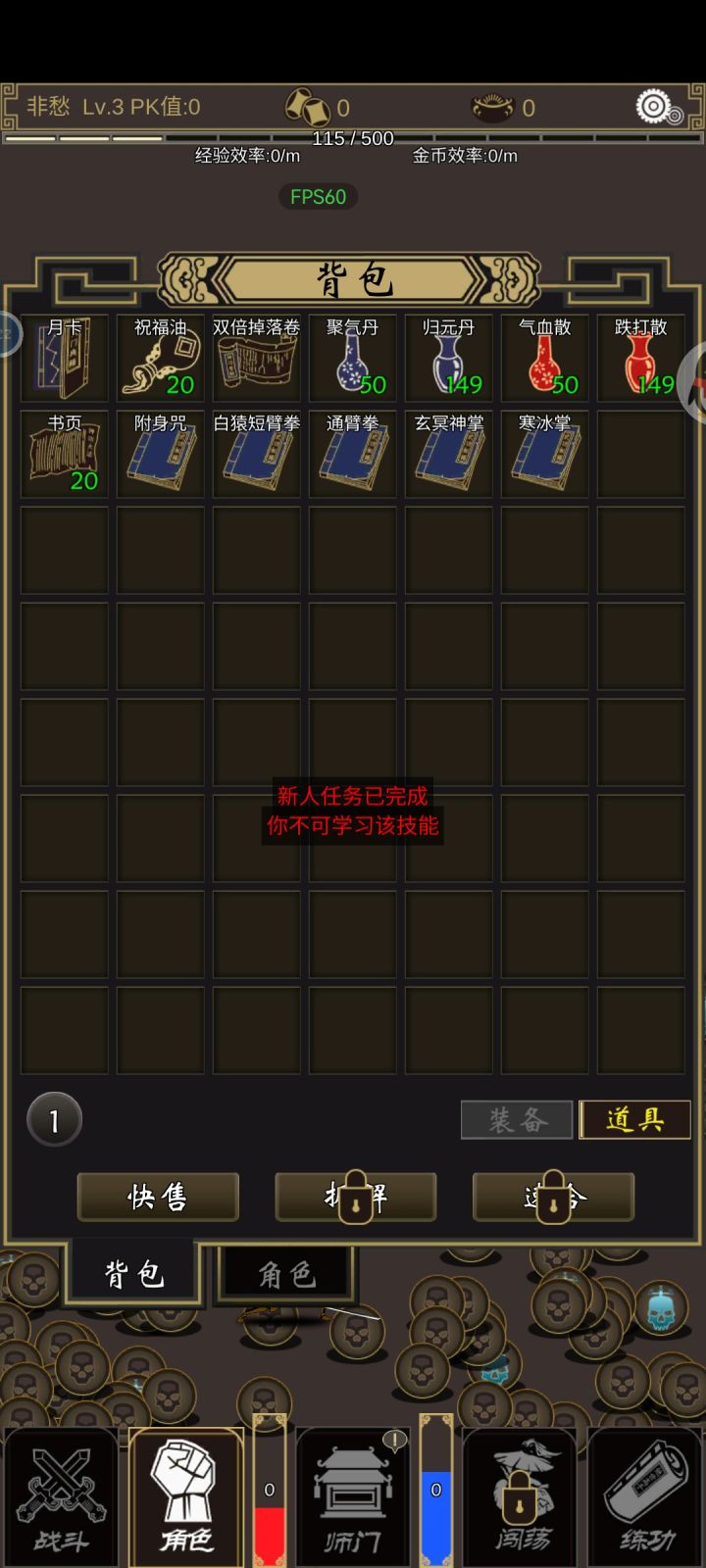 p1p2 我不是三级了吗这个寒冰掌不能学吗