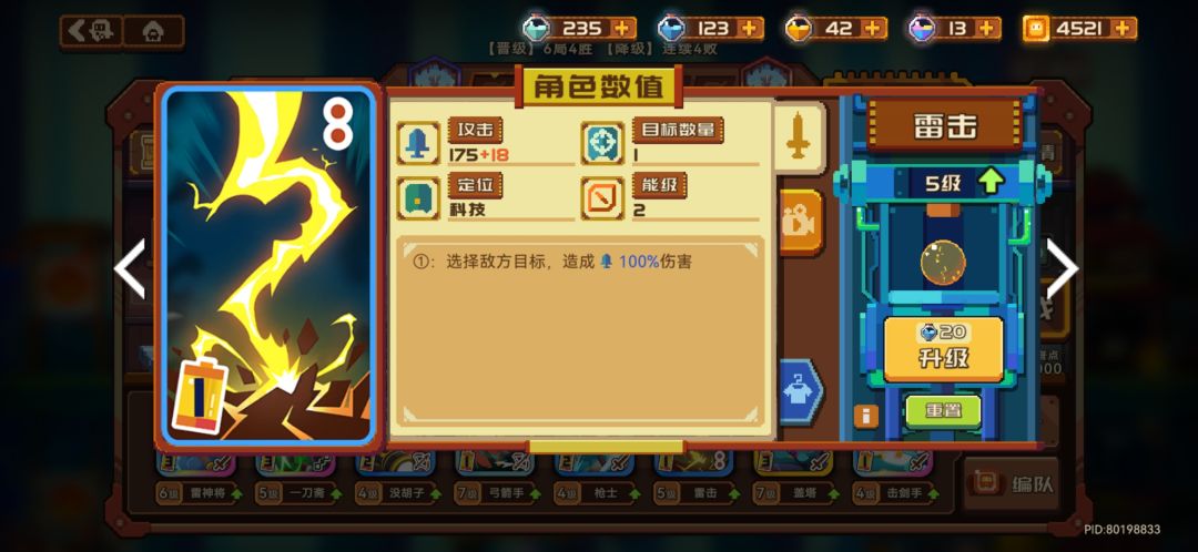 使用思路:雷神将本身面板也就是1费到2费的水平,并不是一张进攻的卡,而是在你的对手打出角色后反攻的解场卡,优先锁后排角色和不低的技能伤害能轻松斩杀很大一部分的后排单卡(包括上文提到的机枪手哥),很单纯的优质卡,只要对面有后排怪拍下去就稳赚。