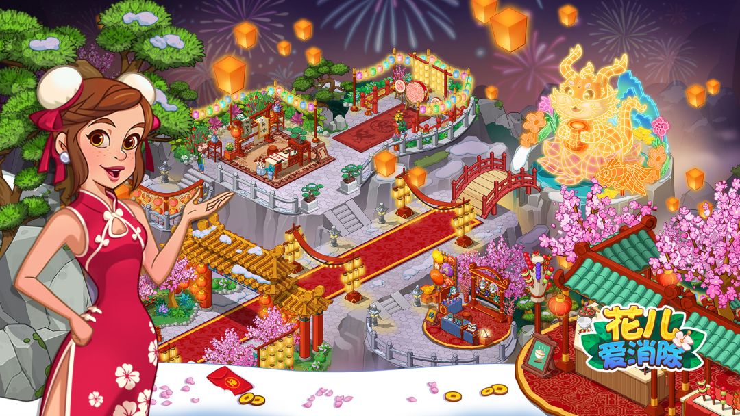 快来新年派对上和大家一起看烟花、放孔明灯吧!