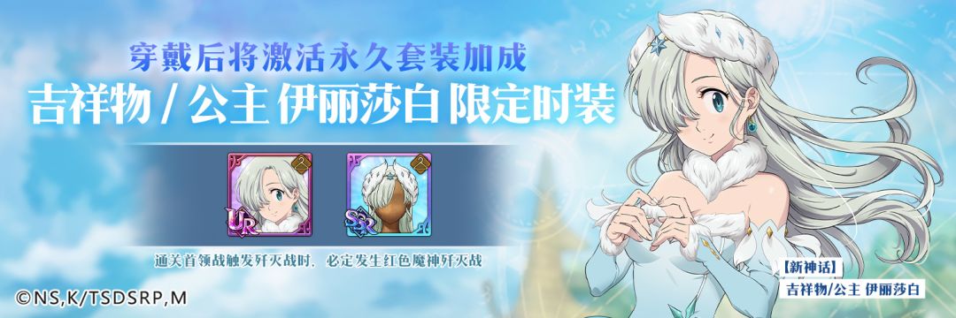 活动介绍:特殊卡池持续期间,新SSR英雄【新神话】魔神 梅利奥达斯、【新神话】公主 伊丽莎白、【新神话】守护者 杰莉卡、【甜蜜诱惑】守护者 伊莱恩、【甜蜜诱惑】德鲁伊 詹娜、【甜蜜诱惑】德鲁伊 莎内莉获取概率限时提升!