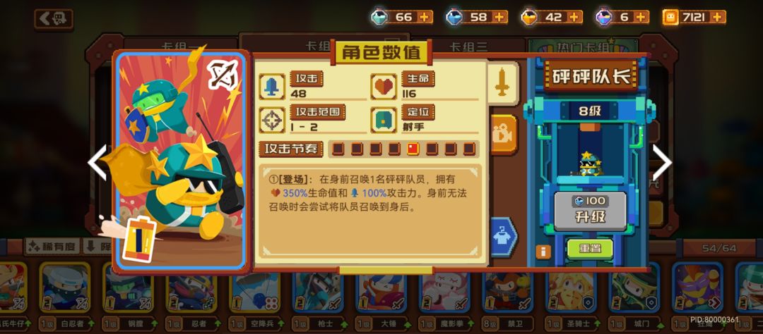 砰砰队长在身前或者身后召唤队员。队长是脆皮,但是攻击距离为2