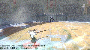 剑客邀约状态的一技能【长虹】会发出一道刀光,短时间后会变宽并瞬移到板边。