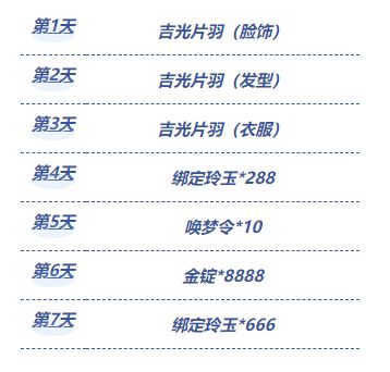 1月16日5:00~1月26日5:00期间,游戏等级大于21级的玩家,每日登录游戏,并前往游戏中的活动页面进行签到。累计登录达到指定天数,即可领取玲珑世界为各位大人准备的豪华公测感恩礼。