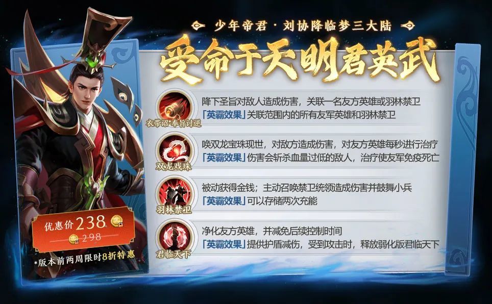 下面,就让我们一起去了解刘协的技能详情吧~