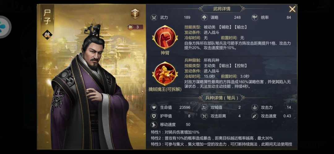 第三种!纯主动战法!立即释放,受无谋影响在。稳定次之被动战法,冷却时间前置时间准备睡觉越短越好。例如
