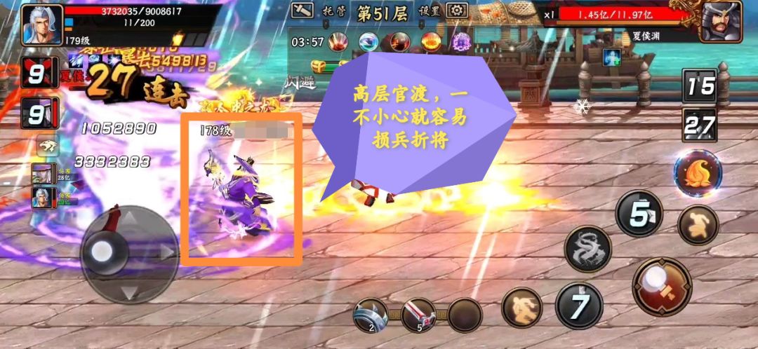 百战“官渡火攻”一直都是大众最喜欢的百战地图,也是玩家冲层的彩蛋,给人的印象就是好打!当初你有多看不起关底主将夏侯渊,如今高层官渡就有多惹不起,高层夏侯渊一刀一个小朋友的神技那可不是盖的,夏侯渊让你深深体会什么是绝望,什么是即将到手的鸭子就这么飞了!我知道有的朋友表示不服,你们高战力玩家随便带个武将都能通关,这就是典型的自以为是,高层百战副本不仅仅需要战力高,配合是关键,一整局好的配合让你事半功倍,胡乱打不会配合,战力高也根本打不出伤害。当遇到血池+吞噬+残暴组合词缀,高层官渡你绝对过不了,何况现在百战高层增加的这些新词缀,41层开始boss身上自带各种火伤害/电伤害……51层还有天煞阵营克制关系。武将一近身输出就哇哇掉血,还有时不时的“天降正义”,一团火、一颗落石满血秒杀,像盲眼致使武将反方向行动那都是小儿科了!