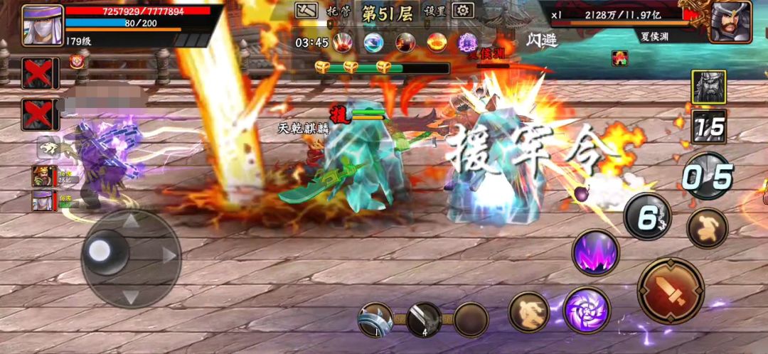 小编也不记得是什么时候,官渡火攻第一场景走上方路线进入第二场景,居然增加了曹仁这一搅屎棍,相信体会过荆州关羽的小伙伴对这种搅屎棍一般存在是极为厌恶的,曹仁血量和双boss纠缠在一起,让你一时难能分辨,是果断超大收割?还是留着怒气给最后场景的终极boss夏侯渊?难以决断!