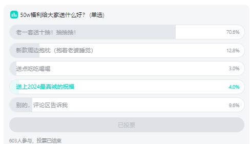 公布一下上周的50w福利投票结果,大家都很实在,套路虽然老,但十分有效,那么: