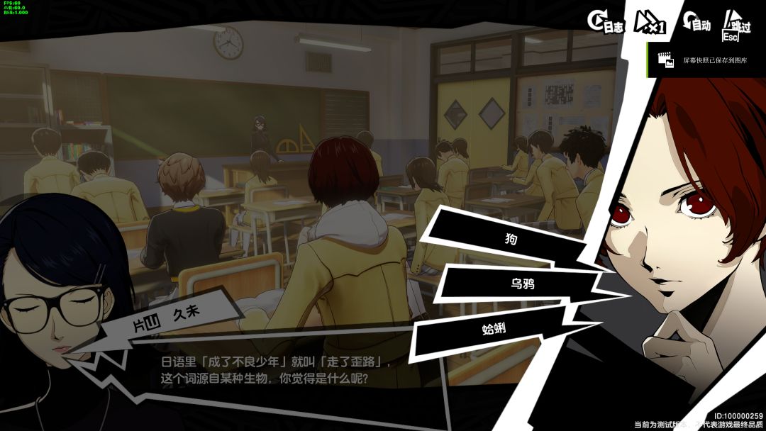 《女神异闻录:夜幕魅影》保证了视觉风格上与「P5」的高度统一。让我来举一个例子说明,「P5」中有随堂提问的环节,视觉上看起来是这样的: