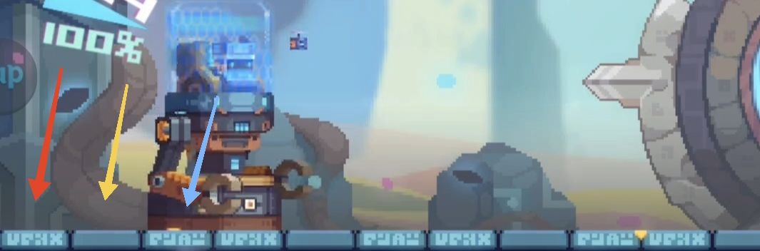 弓箭/乌兹(红箭头处)禁卫(黄箭头处)小电(蓝箭头处)