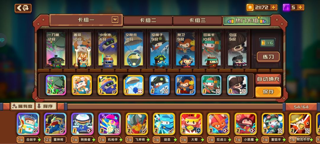 近战选择了一刀斋、小电、禁卫