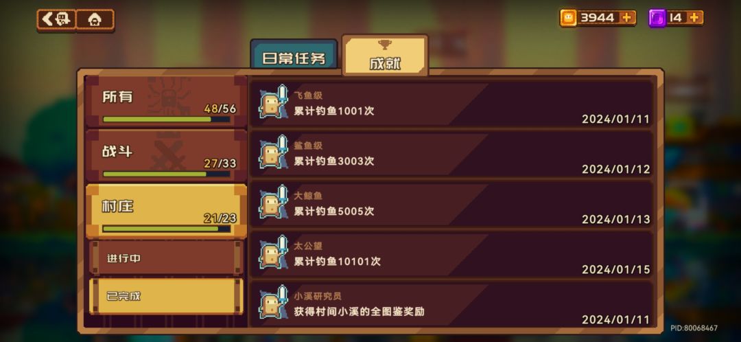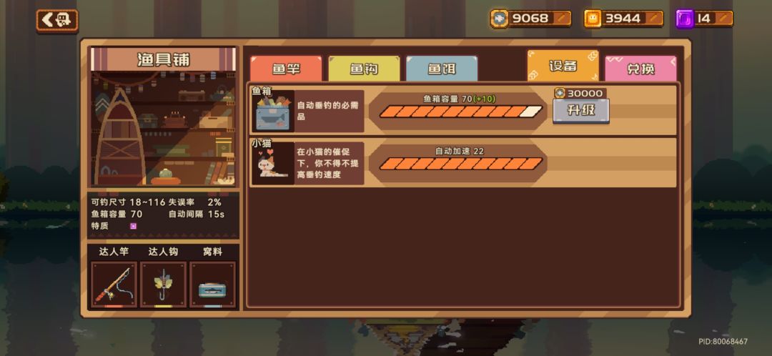 林中密潭不知道啥时候才开,已经等不及了,鱼竿全部满级了。